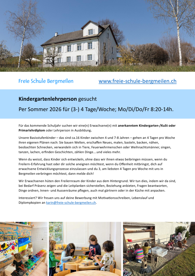 Kindergartenlehrperson gesucht ab SJ 2026/27